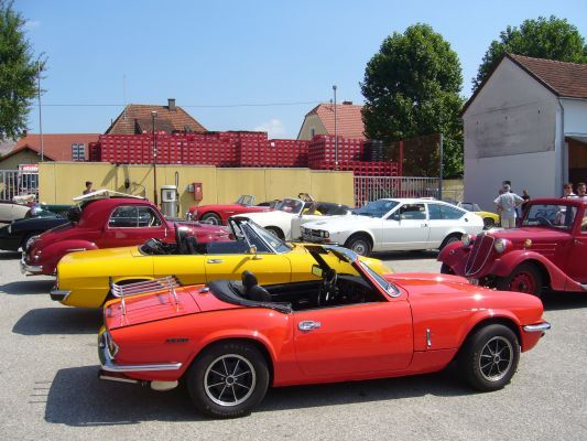 Die heurige Landlrallye von Pfarrer DDr. Brandl führte heuer von Meggenhofen über Eferding, Grieskirchen und Peuerbach auch nach Neumarkt in den Brauereihof. Dort erwartete die Oldtimer-Fahrer eine Labestation mit Getränken der Brauerei und Speisen von Würzl Poldi. Der Turnverein übernahm gerne die Ausschank. Die fleißigen Kellner wurden belohnt mit dem Anblick von knapp 300 größeren und kleineren, ganz seltenen, uralten, amerikanischen, italienischen, englischen und vor allem deutschen Oldtimern – und einer ganz privaten Verkostung des ganz neuen Aperol-Bier-Gemisches Bierol – durchaus empfehlenswert!