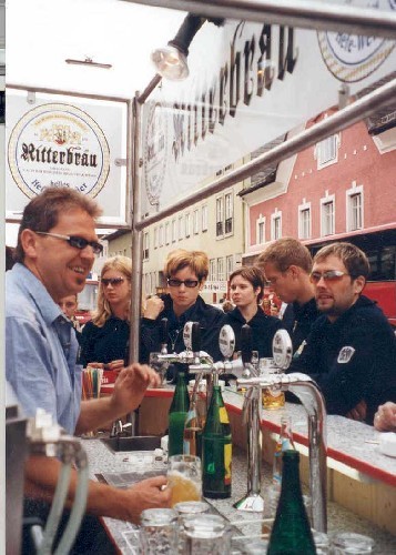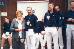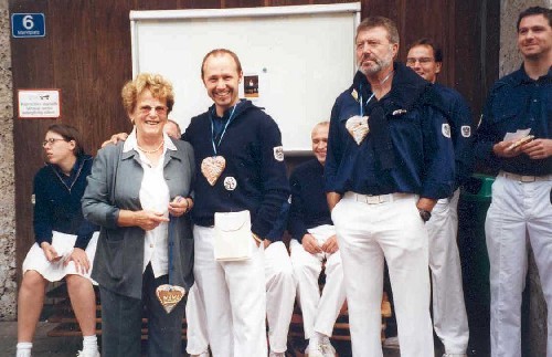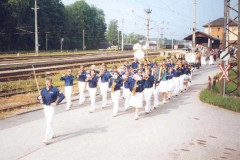 Am Sonntag, dem Tag es Frühschoppens war es besser. Der Spielmannszug traf sich, gemeinsam mit der Eisenbahner-Musik bereits um 08.45 Uhr beim Bahnhof. Dort begann knapp vor 09.00 Uhr ein Festzug mit den beiden Kapellen, der Feuerwehr, den Goldhauben, dem Hundeverein und den ehemaligen Neumarktern. Es wurde zur Kirche marschiert und während der Messe bauten die beiden Kapellen für das Frühschoppenkonzert auf. Pünktlich um 10.00 Uhr war die Kirche zu Ende und es begann unser Spiel bis ca. 11.00 Uhr. Dann begann die Vorführung der Feuerwehr und zwischendurch wurde unser Judo-Senioren-Vizeweltmeister Helmut Gföllner und sein Coach Gerald Stutz auf der Bühne von Bürgermeister Bernd Geyer geehrt. Moderator war der eigens angereiste Hubert Huemer vom Landlsport, der auch einen Kameramann mit hatte. Auch Sponsor Alfred Zechmeister und Obmann-Stv. Hans Leeb waren auf der Bühne und beglückwünschten Helmut zu seinen beiden Medaillen.