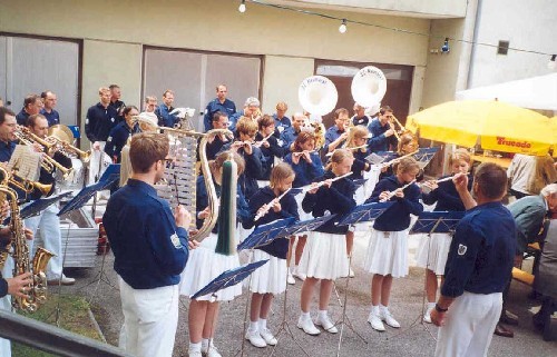 Nach der Ehrung fand auch noch die Verlosung der großen Tombola statt, ehe wir um 13.00 Uhr wieder an der Reihe waren. Wir spielten noch einige Stücke und bildeten den Abschluss mit zwei Stücken im Pfarrhof, wo ebenfalls viele Leute saßen.