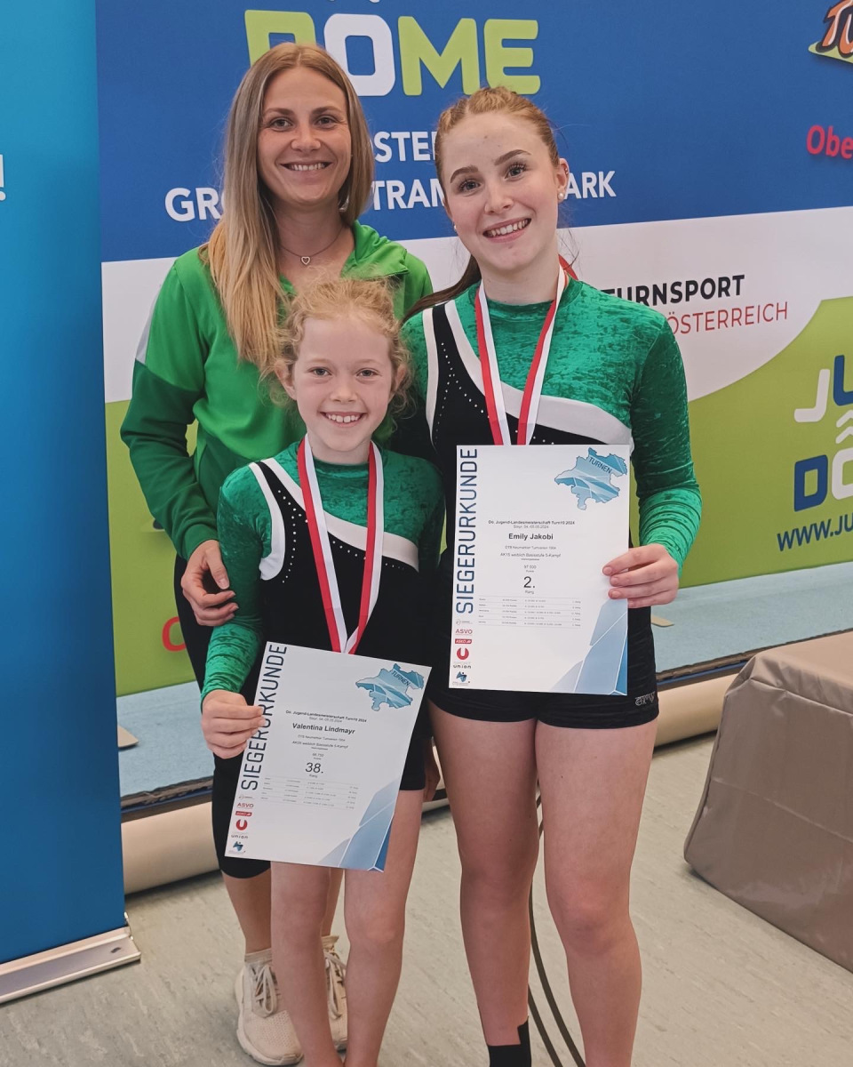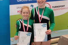 In Steyr, jedoch leider nur mit zwei Turnerinnen, konnten unsere zwei Mädls nochmal zeigen, was sie alles draufhatten. Sie schlugen sich ausgezeichnet und die Ergebnisse können sich sehen lassen: