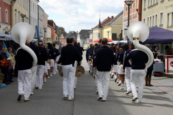 Wie in jedem Jahr umrahmte auch heuer der Spielmannszug den Pferdemarkt musikalisch. Um 13:00 Uhr marschierten wir vom Turnerheim kommend am Marktplatz ein. Mit einer ansehnlichen Anzahl an Spielleuten und klingendem Spiel gingÄs einmal über den Marktplatz. Bei einigen Zwischenhalten bei den Wirtshäusern spielten wir für die zahlreichen Besucher einige Stücke. Nach zwei Dopplern von unserem Brauwirt und einer Stunde musizieren war unser Einsatz auch schon wieder vorbei, denn die Kollegen der Marktmusikkapelle übernahmen die weitere musikalische Umrahmung. Die Marktgemeinde lud uns im Anschluss noch auf ein Essen und ein paar Getränke ein und bei wunderschönem Wetter verbrachten manche Spielleute noch einige weitere Stunden am Pferdemarkt 2012.