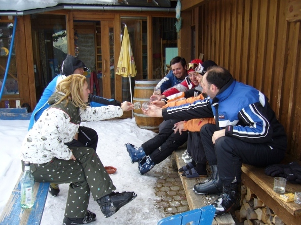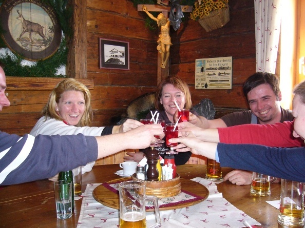 Auf der Stubneralm, da gibt’s an Pulverschnee – auch Ende März! Perfekte Schneeverhältnisse und täglich 15 cm Neuschnee fanden wir bei der heurigen Schiwoche auf der Öli-Hütte in Bad Gastein vor. Im Gebirge schlägt das Wetter schnell um, heißt es. Dem können wir nur Zustimmen. Waren am Vormittag wegen der Sturmböen oft einige Lifte gesperrt, verbliesen diese die Wolken bald und wir konnten am Nachmittag auf der Jungeralm, beim Erhard, so manches Himberli bei schönstem Sonnenschein im T-Shirt genießen! Daheim in der Öli-Lodge wartete immer unser Koch Boki, der täglich ein feines Menü auf den Tisch zauberte. Einen Abend ging es, wie jedes Jahr, auf die Stubneralm zum Ripperlessen, heimwärts mit Stirnlampe oder im Blindflug. Ansonsten: Herzln, Kratzen, Schnapsen, Schnapseln – „Hüttengaudi“!