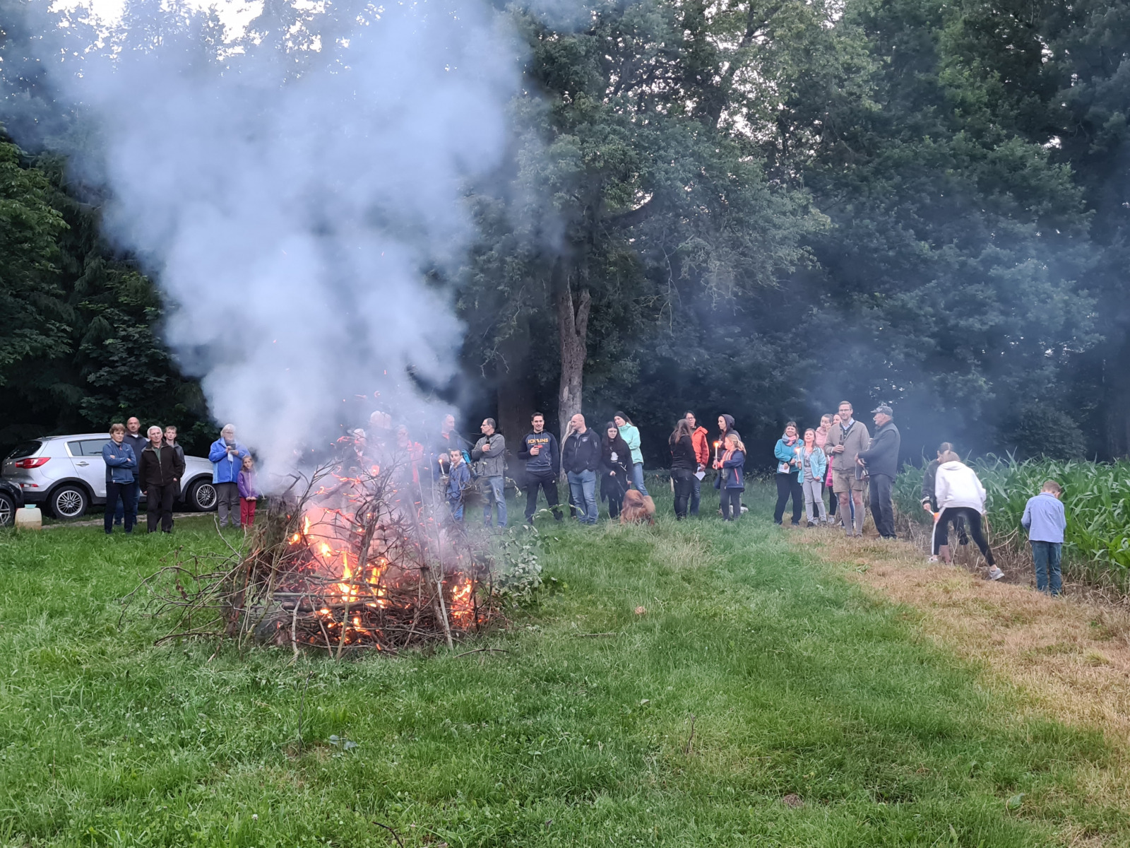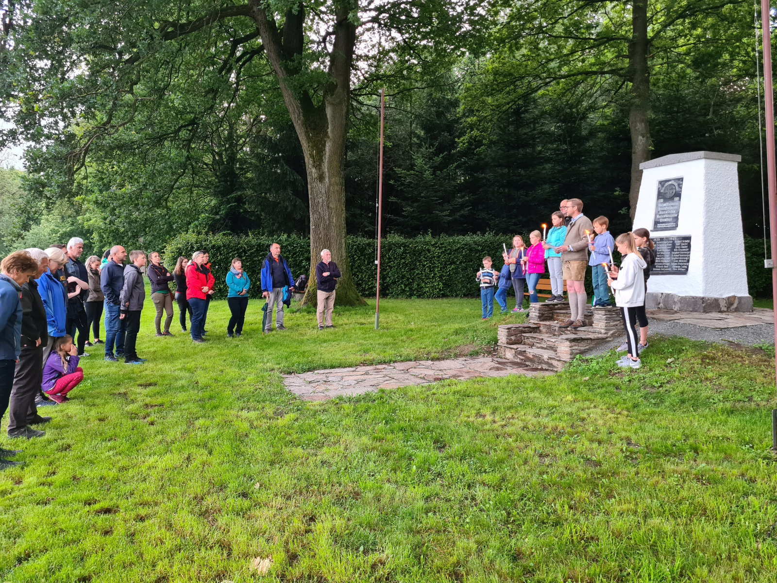 Im Rahmen des 800-Jahr-Jubiläums war für den 20. Juni ursprünglich eine geschichtliche Themenwanderung mit anschließender Sonnwendfeier geplant. Covid-19 und der damit verbundene weltweite Lockdown verursachte bereits eine frühzeitige Absage der Themenwanderung. Im Zuge der ersten Corona-Lockerungen entschlossen wir uns, als einer der ersten Veranstalter, die Sonnwendfeier gemäß den Vorgaben (max. 100 Besucher) abzuhalten. Aufgrund der recht unsicheren Witterungsbedingungen entschied sich unser Sonnwendfeier-Team gegen eine Grillerei beim Turnerdenkmal. Zeitweiser Regenfall und Kälte waren an diesem Tag und v.a. am Abend nicht gerade einladend. Um den vorbereiteten Holzstoß trotzdem abzubrennen, trafen sich dennoch Turngeschwister und Freunde. Zum Glück waren wir bestens vorbereitet und mit Hilfe von Brandbeschleuniger konnte das nasse Holz rasch angezündet und der Holzstoß niedergebrannt werden. Im Anschluss luden wir noch zu Bratwürstel vom Grill ins Turnerheim, wo wir gemütlich den längsten Tag des Jahres ausklingen ließen.