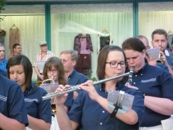 Dort waren schon die vielen Gäste anwesend und pünktlich begannen wir unser Spiel und zwischen der hervorragenden Turnvorführungen der Bad Schallerbacher spielten wir immer zum Geräteumbau ein Stück. Moderiert wurde das ganze von Obmann Roland Nickmann. Kurz nach 20.30 Uhr war aber Schluss und wir marschierten mit klingendem Spiel gefolgt von vielen Teilnehmern hinunter zum Turnerheim der Bad Schallerbacher. Der Weg, den unser Stabführer Wolfgang Steiner einschlug war dieses Mal der kürzere und so erreichten einige relativ rasch das Gelände am Turnplatz.