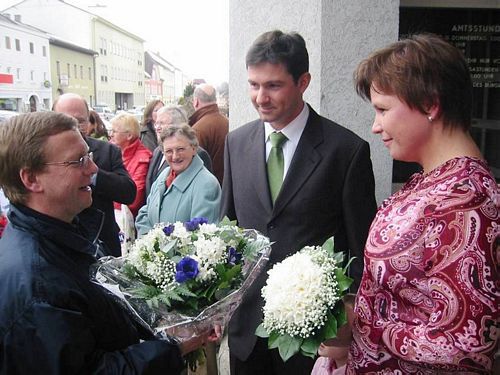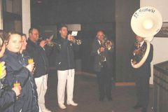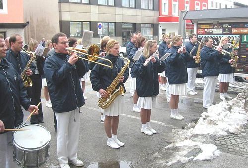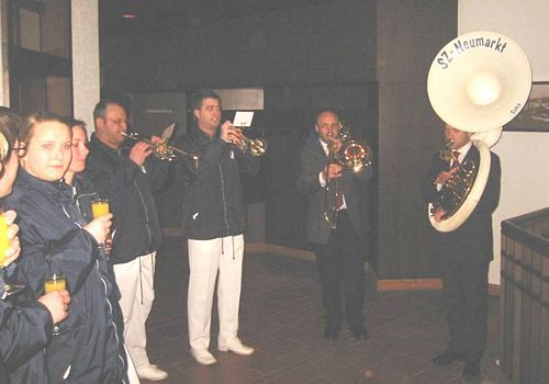 Eine seltene Angelegenheit trug sich am 11. März 2006 in Neumarkt zu – eine Spielmannshochzeit. Unser jahrelanger Zugposaunenspieler und Arbeitstier für Alles – Günther Lakoschek heiratete am Standesamt in Neumarkt seine jahrelange Gefährtin und ehemalige Flötistin des Spielmannszuges Ursula Schöberl. Natürlich war dies für uns Anlass genug, um die beiden sowie die Hochzeitsgesellschaft vor dem Rathaus mit einem Ständchen zu empfangen. Auch einige Zivilisten spielten mit, sind doch fast alle Brüder der beiden ebenfalls beim Spielmannszug in führender Rolle. Wir wünschen alles Gute für die gemeinsame Zukunft und vor allem auch in unserem Verein.