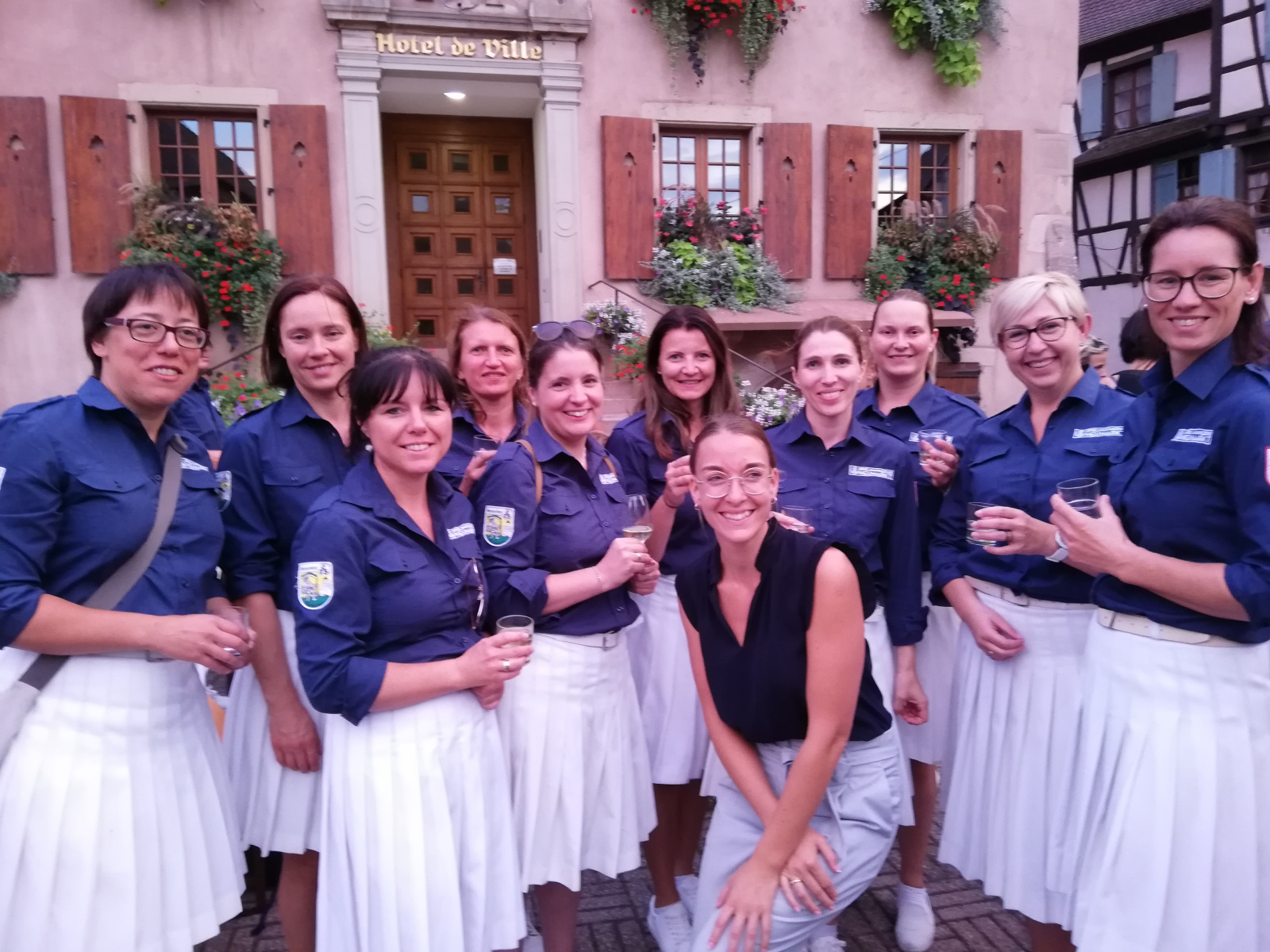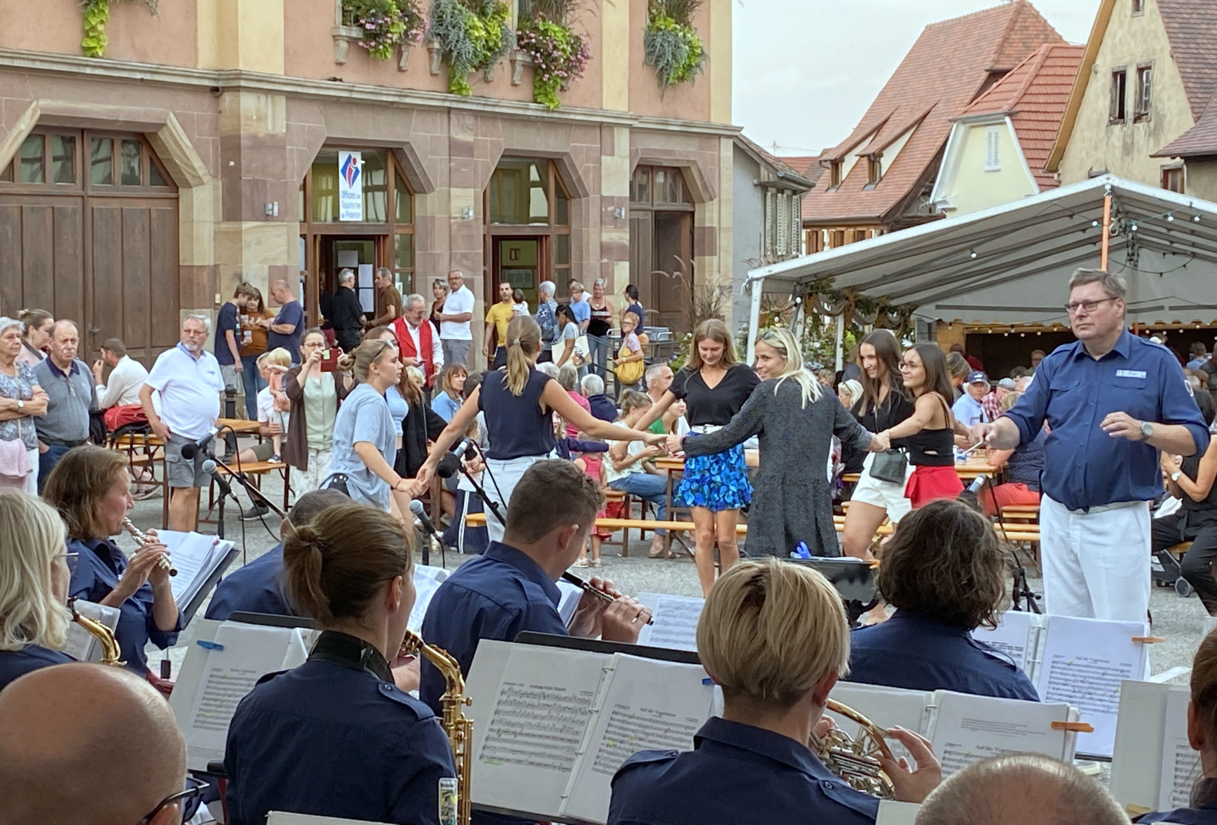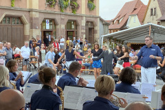 Am Freitag besuchten wir Colmar in der Elsässchen Weinstraße. Am Nachmittag erhielten wir einen herzlichen Empfang im Weindorf Dambach-la-Ville. Der Bürgermeister lud uns ein zu einer ausführlichen Besichtigung der Weinberge mit anschließender Verkostung sämtlicher Weine inkl. Jause und später Abendessen und allem was unser Herz begehrte und Körper aufnehmen konnte. Am Abend gaben wir ein Konzert in Dambach-la-Ville, die Franzosen und Touristen freuten sich über unseren Auftritt und wir freuten uns über die herzliche Aufnahme. Gemeinsam mit der Dambacher Musikkapelle spielten wir noch die Polka „Auf der Vogelwiese“ inklusive kräftigem Gesang aller Beteiligten.