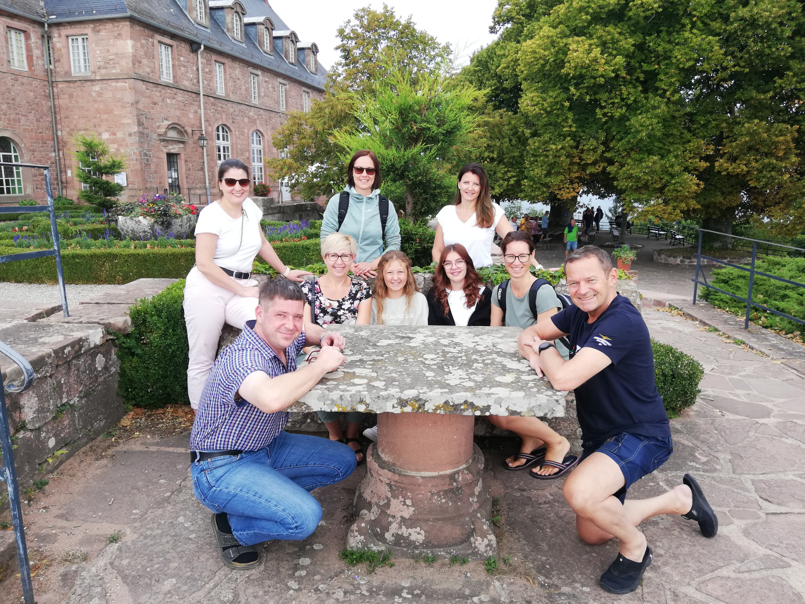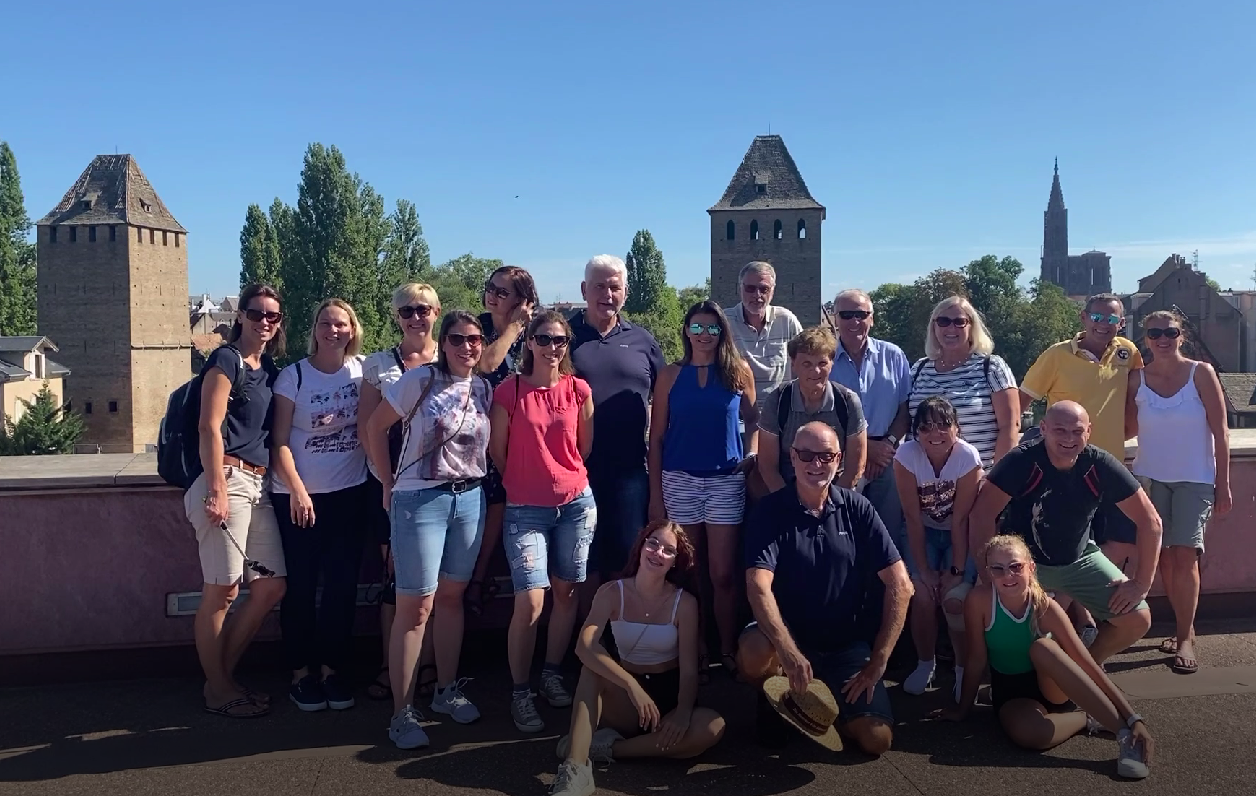 Um keine Zeit zu verlieren, verlegten wir die Anreise mit dem Bus in die Nacht. Donnerstag am Morgen erreichten wir Boersch, die neue Heimat von Theresa, und gestärkt mit einem abwechslungsreichen Frühstück machten wir uns mit dem Zug auf nach Straßburg zur Stadtbesichtigung. Am Abend luden uns noch die Eltern des Brautpaares zum traditionellen Flammkuchen-Essen ein und ziemlich geschafft vom ersten Tag der Reise ging es bald ins Bett.