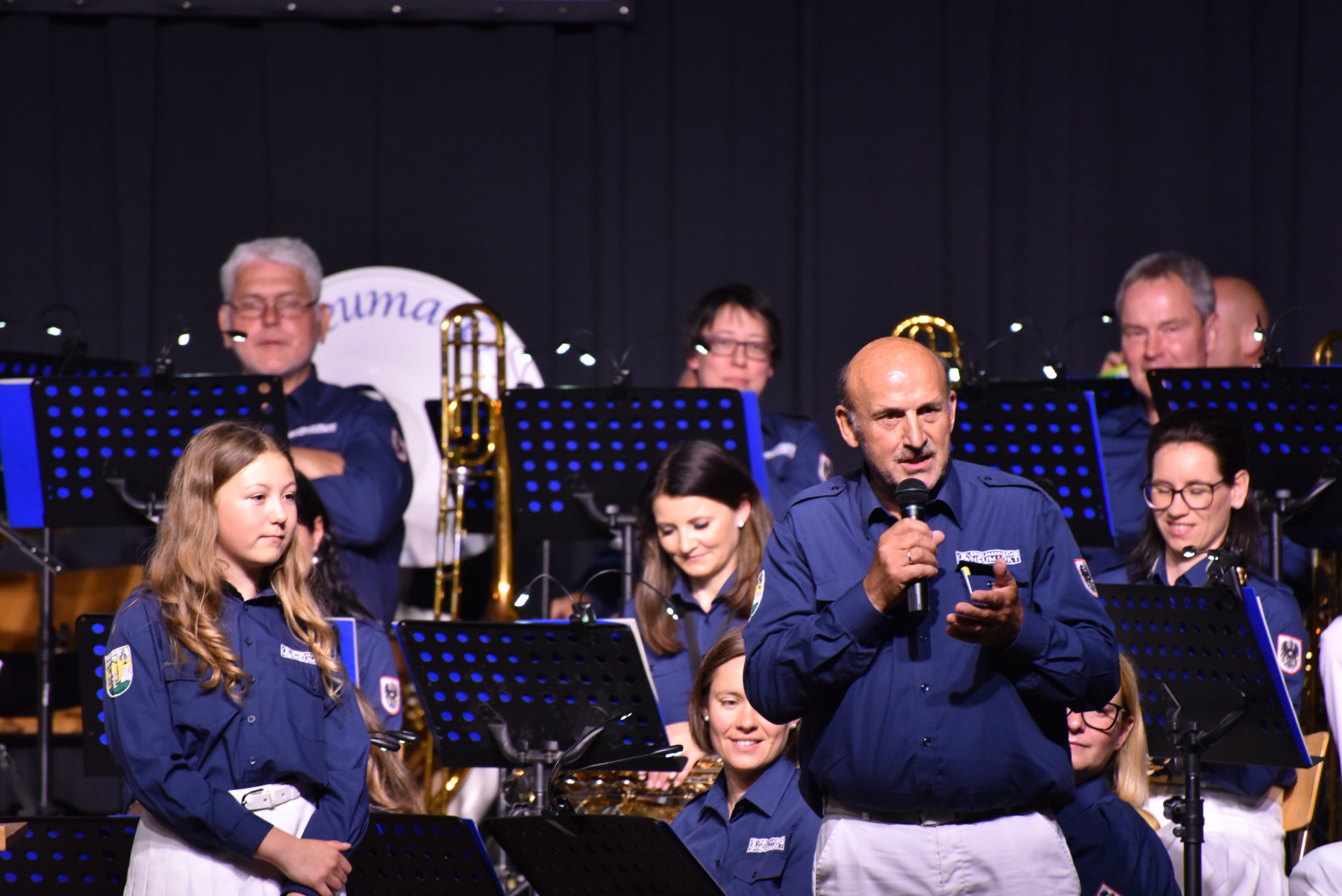 Eines möchte ich aber trotzdem noch sagen: Danke! Und zwar an alle tollen Menschen, die zu diesem Konzert beigetragen haben, sei es in der Küche, im Service, beim Auf- oder Abbauen, bei der Technik, beim Fotografieren, … Euch alle namentlich zu nennen, würde diesen Text mehr als verdoppeln, deshalb einfach ein großes DANKE an euch alle! Namentlich erwähnen möchte ich jedoch Kapellmeister Bernhard Braunbock, der stets mit viel Geduld mit uns probt und das Programm mit viel Kreativität und Können auf die Beine gestellt hat. Danke, Bernhard! Außerdem ein großes Dankeschön an Spielmannszug-Leiterin Bianca Wassermayr, bei der immer allerhand Fäden zusammenlaufen, und die es jederzeit schafft, sie zu entwirren, aufzuteilen und daraus einen bunten Stoff zu weben. Danke, Bianca! Apropos Fäden zusammenlaufen: Eine ganze Menge Fäden laufen bei jeder Veranstaltung im Turnverein auch immer bei Festwart Albin Schatz zusammen, der alles mit viel Können und Geschick über die Bühne bringt. Danke, Albin!