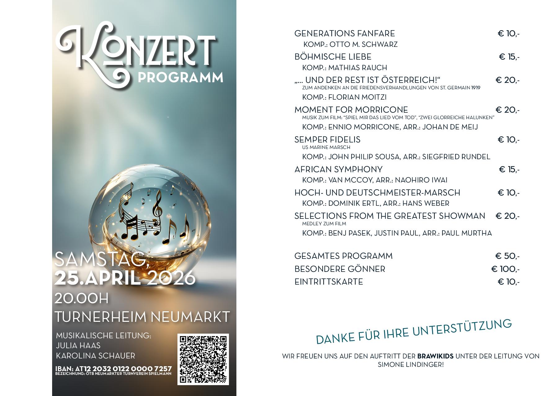 - Karten: Bei allen MusikerInnen des Spielmannszuges