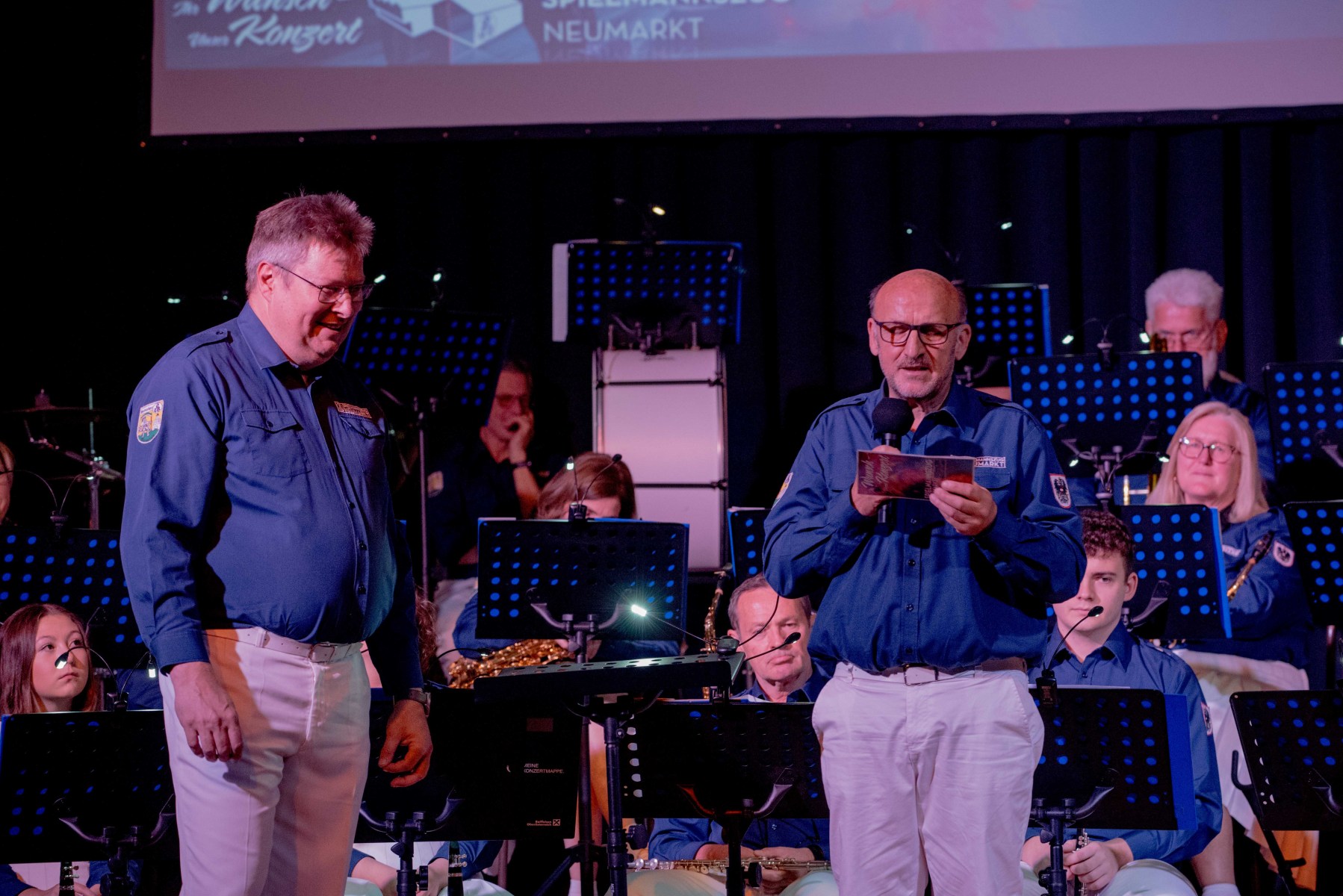 Für Kapellmeister Bernhard Braunbock war es zudem das letzte Mal, dass er den Taktstock bei einem SZ-Konzert schwingen würde. Lieber Bernhard, wir, deine Spielleute, wollen uns auch auf diesem Weg für dein jahrelanges Engagement, deine Geduld und deinen Glauben an uns bedanken! Es war uns eine Freude, mit dir musiziert zu haben!