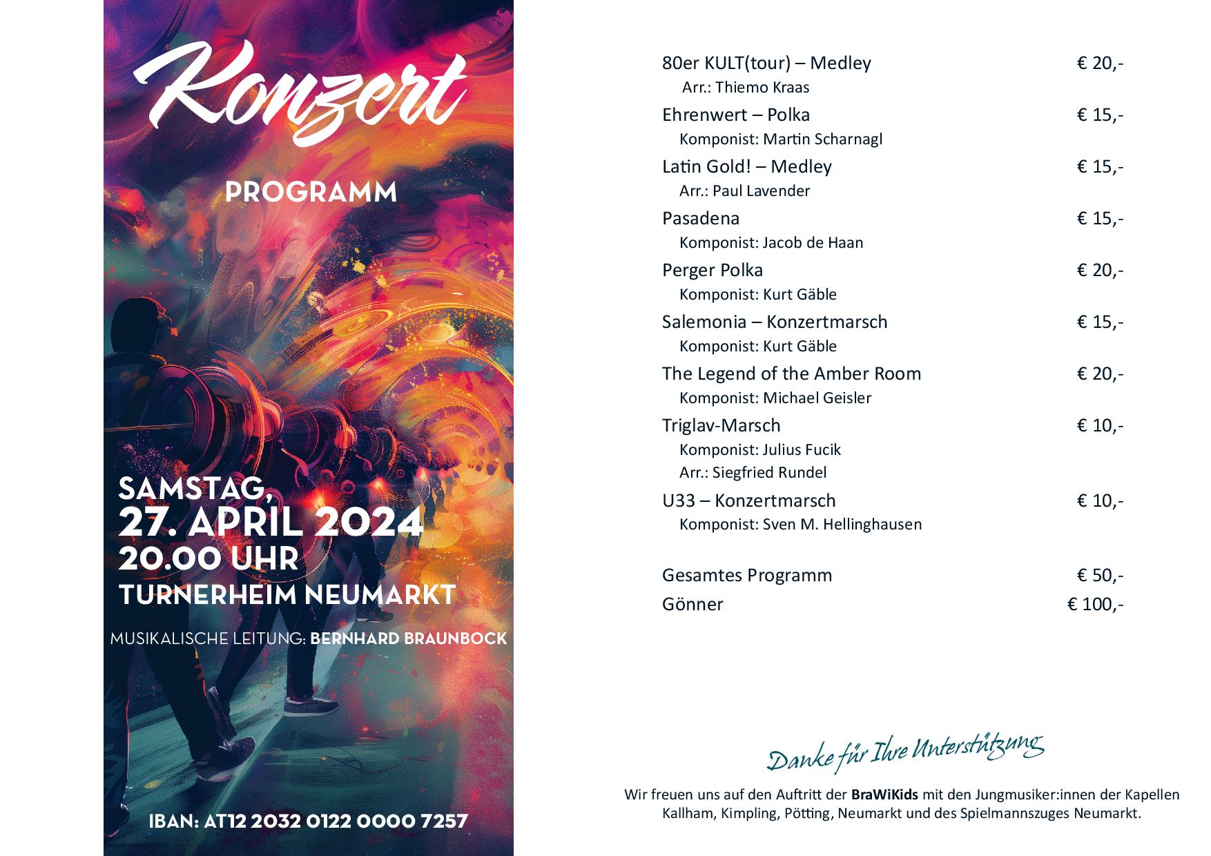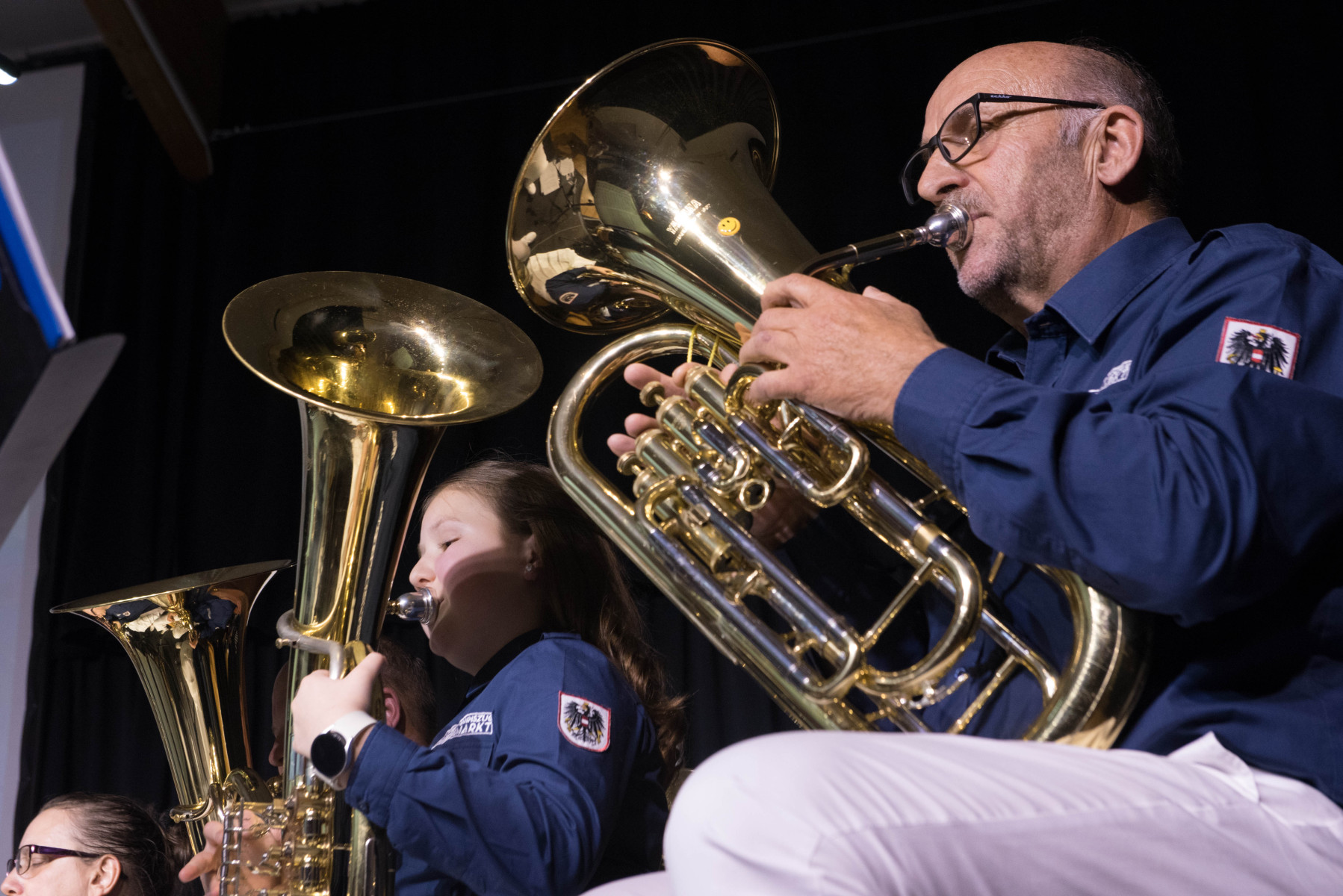 Bunt war nicht nur das neue Plakat fürs alljährliche SZ-Wunschkonzert, auch das Programm überzeugte durch seine Vielfalt. Kapellmeister Bernhard Braunbock hatte mit gewohnt professioneller Manier eine Auswahl getroffen, die keine Wünsche offen ließ, denn von Polkas über Märsche bis hin zu flotten Ohrwürmern war alles mit dabei. So träumte sich das Publikum bei der Ehrenwert-Polka oder der Perger Polka auf einen beschwingten Dämmerschoppen, ein kühles Bier in der Hand und die zum Mitsingen einladende Melodie mitsummend. Der U33-Konzertmarsch entführte die BesucherInnen mit einem U-Boot in die Untiefen des Meeres, während sie zu den Klängen des Triglav-Marsches in schwindelerregenden Höhen den gleichnamigen slowenischen Berg erklommen. Auch Mysterien wurde beim Wunschkonzert auf die Spur gegangen, und zwar als der Spielmannszug Neumarkt die Konzertgäste ins sagenumwobene Bernsteinzimmer entführte. Und bei den mitreißenden Klassikern, die das 80er KULT(tour)-Medley oder das Latin Gold!-Medley enthielten, blieb wohl kein Fuß still. Kurzum: Das Wunschkonzert des Spielmannszugs, das am 27. April 2024 im Turnerheim Neumarkt über die Bühne ging, überzeugte einerseits durch das bunte Programm und andererseits durch die charmante Art von Moderator Fred Schöberl. Die ausgiebige und gemütliche Konzertnachbesprechung im Anschluss trug das ihre zum Erfolg des Konzertes bei.