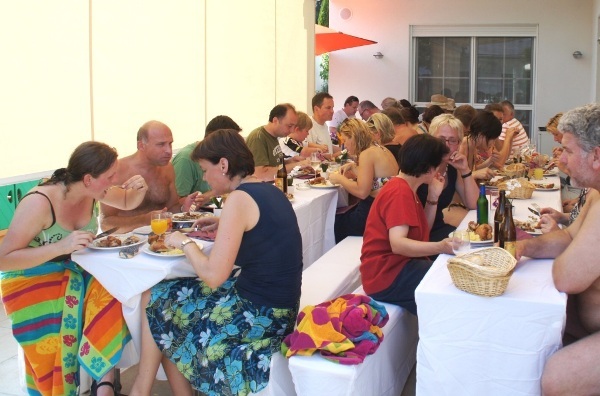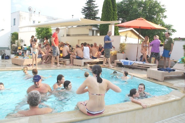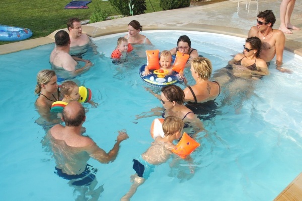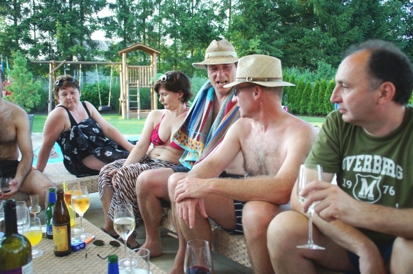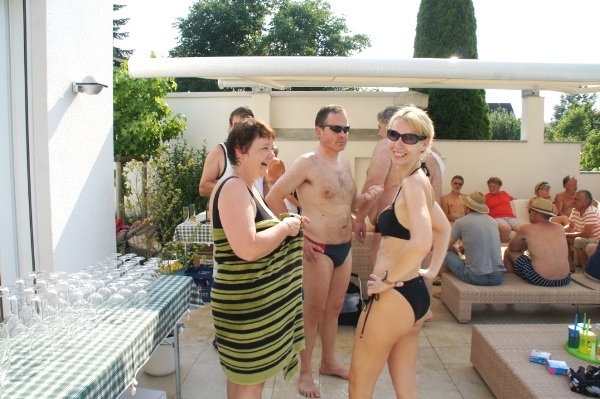 Obwohl wegen vieler Termine, speziell für das Landesturnfest in Steyr, keine richtige Sommerpause aufkommen konnte, feierten wir doch unser alljährliches Spielmannszug-Sommerfest am Samstag, den 3. Juli, diesmal im Hause unseres Spielmannes Roland Lakovsek. Er hatte sich mit seiner Familie mitten in Wels eine kleine Arbeiterwohnstätte errichtet und dies war die passende Gelegenheit, das wunderschöne Haus mit ca. 300 m2 Wohnfläche einzuweihen. Das Wetter war perfekt, so dass auch der Pool vom SZ voll genützt werden konnte. Für Unterbrechung sorgte nur ein WM-Fußballspiel, welches aber im kellereigenen Kino angesehen werden konnte. Trotz Urlaubszeit waren fast 90 % aller Spielleute samt Partner und Kinder anwesend und so erfreuten sich knapp 80 Gäste an der köstlichen Bewirtung mit Grillhenderl, etc. Ordentlich wurde gefeiert und unsere perfekte Kameradschaft wurde bis zum Sonnenaufgang voll genützt.