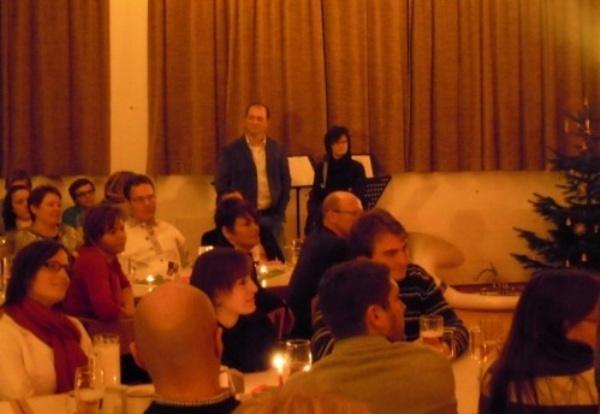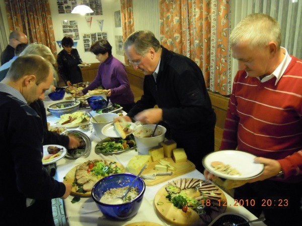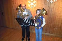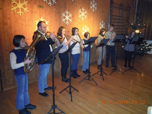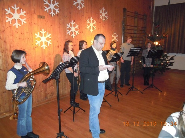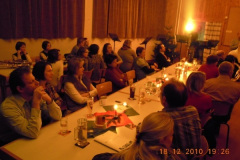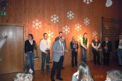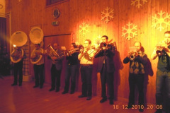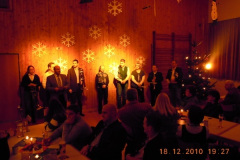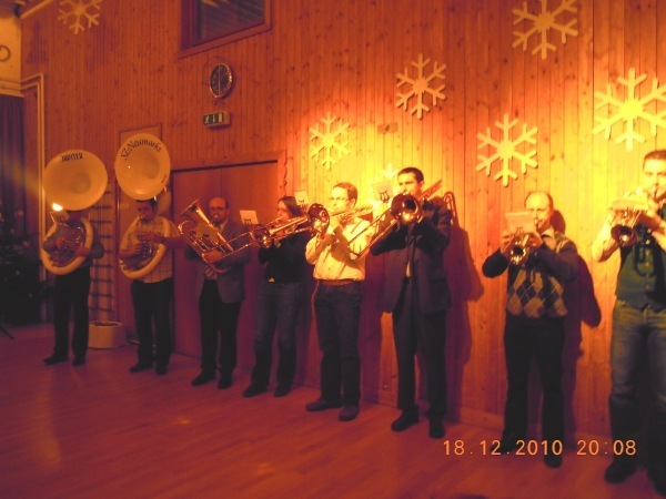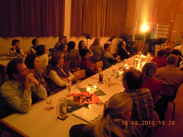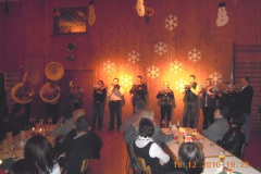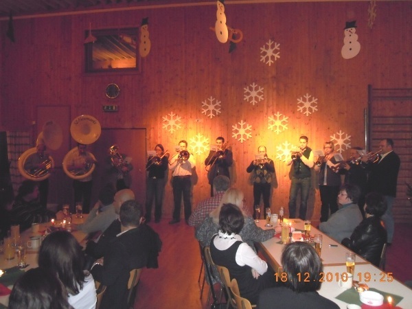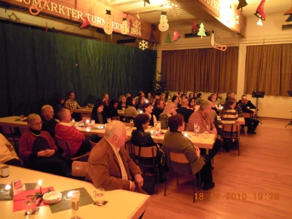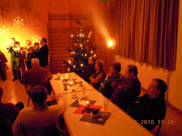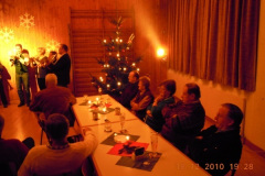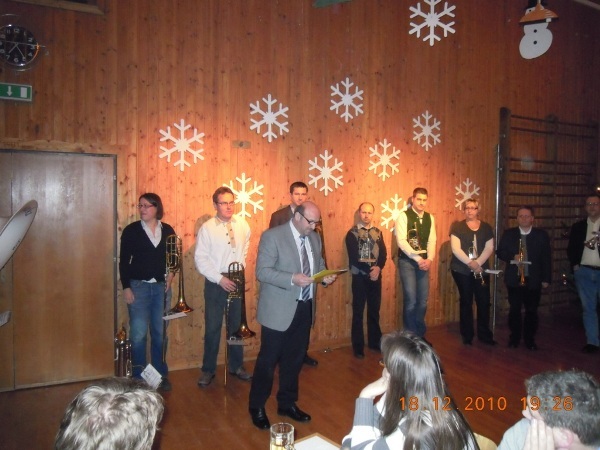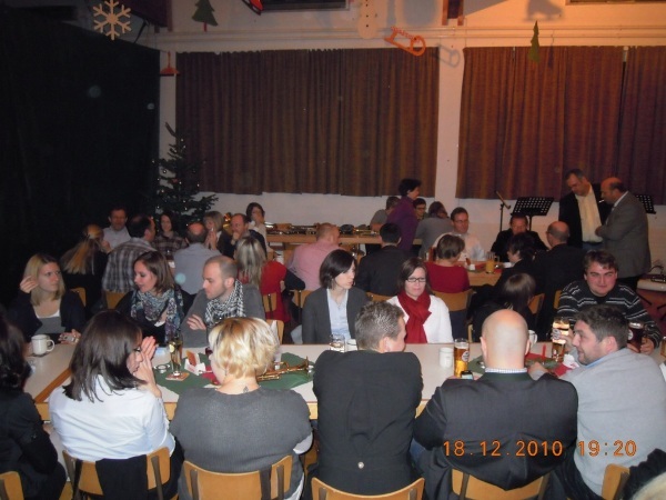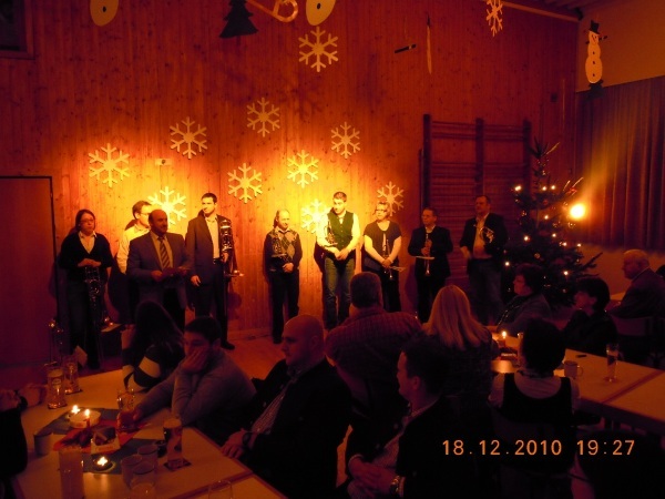 Zwei Wochen nach unserem großen Julschauturnen lud am Samstag, den 18. Dez. der Spielmannszug in unser Turnerheim, diesmal zur Weihnachtsfeier in die abgetrennte Halle unseres Turnerheimes. Vor dem Turnerheim trafen wir uns schon zu heißem Glühmost, welchen unsere ?Jungspielleute? Karin und Bianca zubereiteten. Nach Abwarten der akademischen Viertelstunde eröffneten unsere Bläser den offiziellen Abend. Mit Freude konnte SZ-Leiter Manfred Schöberl auch einige Freunde und Gönner des Vereines begrüßen. Nach dieser begannen die Vorträge der einzelnen Gruppen und jede hatte sich wieder etwas Spezielles einfallen lassen. Von den Nachwuchsspielleuten über die Familienmusik Sauer bis hin zu den SOG spannte sich der Bogen. Nachdenklich Worte über den Probenbesuch vom SZ-Leiter und seinem Stellvertreter Hans-Peter Sauer und Worte des Dankes von Obmann Gerald Stutz, sowie Gedichte machten diese offizielle Stunde zu einem bsinnlichen, weihnachtlichem Abend. Das anschließende Buffet schmeckte ebenfalls hervorragend und die traditionelle “Bacardi-Time“, ein Relikt aus Spanienzeiten vor 30 Jahren, trugen zu einer tollen Stimmung schlussendlich bei. Wie lange die anschließende Feier dann dauerte ist vorstellbar.