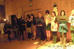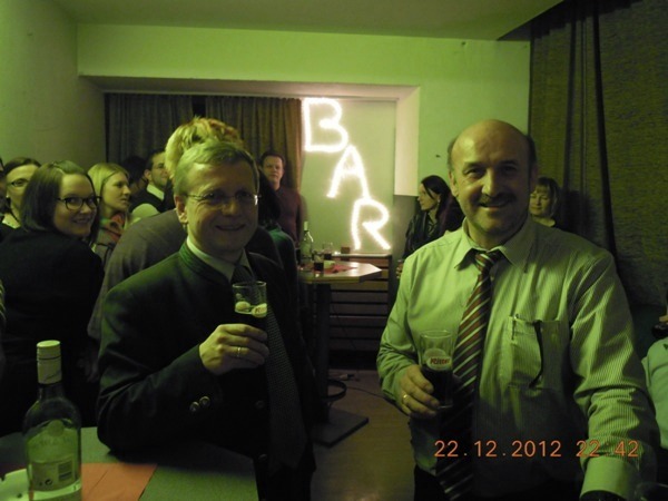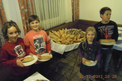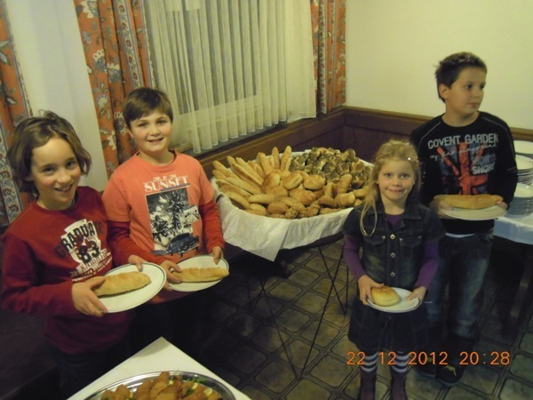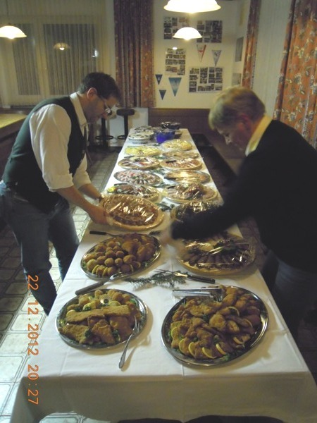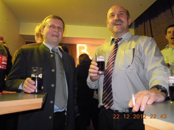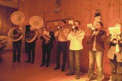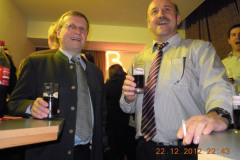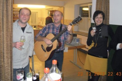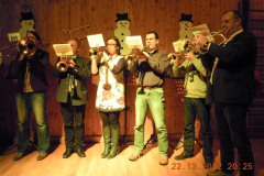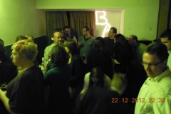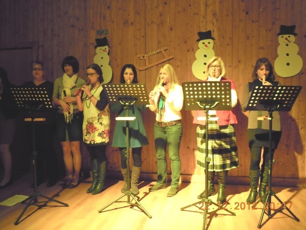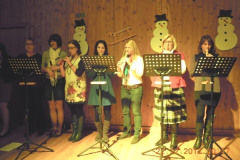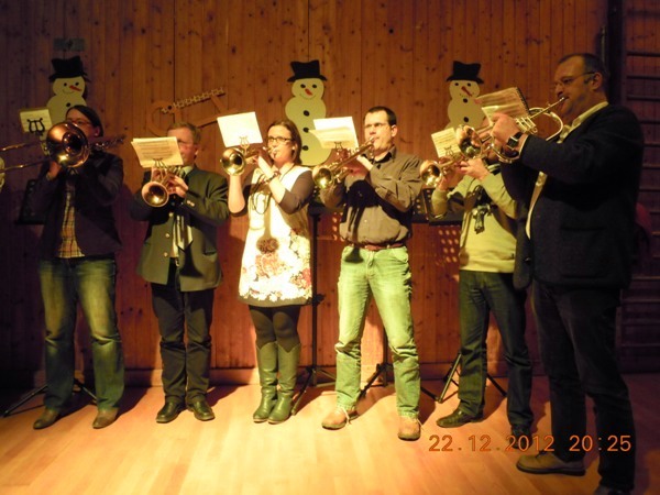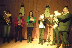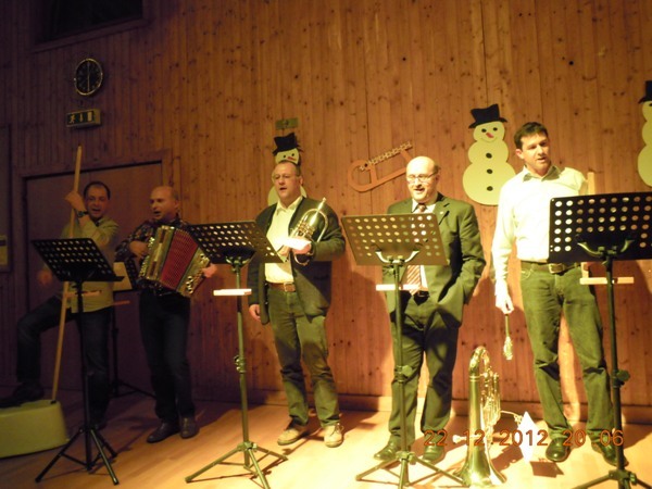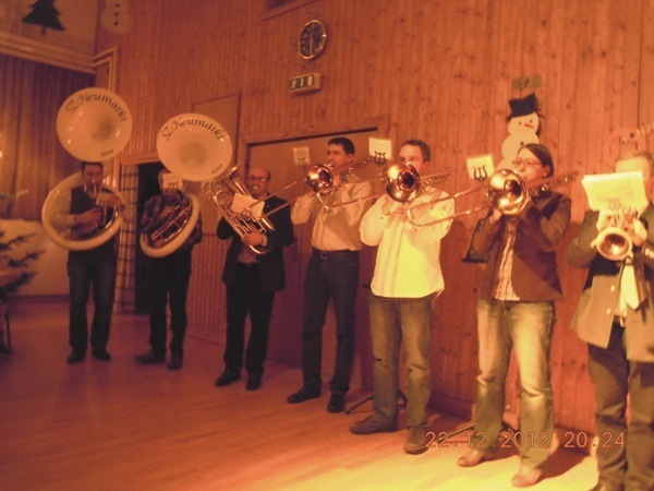 Zwei Wochen nach unserem großen Julschauturnen lud am Samstag, den 22. Dez. der Spielmannszug in unser Turnerheim, diesmal zur Weihnachtsfeier in die abgetrennte Halle unseres Turnerheimes. Obwohl am Vortag lt. geschäftstüchtigen Händlern die Welt unterging, drehte sie sich nach dem 4. Punschstand hinter der Neumarkter Kirche, wo wir mit einem SZ-Stand vertreten waren, doch weiter. Nach Abwarten der akademischen Viertelstunde eröffneten unsere Bläser den offiziellen Abend. Mit Freude konnte SZ-Leiter Manfred Schöberl auch einige Freunde und Gönner des Vereines begrüßen. So u.a. den Bürgermeister der Marktgemeinde Neumarkt Johann Floss sowie Gabi und Alfred Zechmeister. Nach der Begrüssung begannen die Vorträge der einzelnen Gruppen und jede hatte sich wieder etwas Spezielles einfallen lassen. Von den Nachwuchsspielleuten über die Familienmusik Sauer bis hin zu den SOG spannte sich der Bogen. Zum zweiten Mal traten auch die Gruppe GÜZ (Girls über Zwanzig) in Aktion, die zwei wunderbare Musikstücke mit ihren Blockflöten vortrugen. Besinnliche Worte sowie ein kleiner Jahresrückblick vom SZ-Leiter und seinem Stellvertreter Hans-Peter Sauer, Worte des Dankes von Obmann Gerald Stutz und Bürgermeister Floss, sowie Gedichte machten diese offizielle Stunde zu einem besinnlichen, weihnachtlichem Abend. Nach dem schönsten Weihnachtslied “Stille Nacht“ wurde das Buffet, welches wieder hervorragend schmeckte, eröffnet. Die traditionelle “Bacardi-Time“, ein Relikt aus Spanienzeiten vor 32 Jahren, wurde erstmals vom Keller in den nett umfunktionierten Geräteraum des Saales verlegt und trug auch zu einer tollen Stimmung bei, der dabei nicht mehr so leer wirkte. Wie lange die anschließende Feier dann dauerte ist vorstellbar, einige erinnern sich an etwa 06.30 Uhr…..