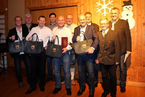 Vizebürgermeister Fritz Schaur bedankte sich im Namen der Gemeinde Neumarkt für den Einsatz des Spielmannszuges und hatte auch noch eine Überraschung bereit. Die Marktgemeinde Neumarkt ehrte nämlich in diesem feierlichen Rahmen die „Se oritschinel Goatnzauns“ für ihre langjährige Tätigkeit und dafür, dass sie unsere Neumarkter weit über die Grenzen hinaus bekannt machen. Desweiteren konnten wir noch eine ganz spezielle Ehrung vornehmen: Unser Beckenspieler Gerhard Schien ist seit 50 Jahren aktiv im Spielmannszug dabei! Dafür erhielt er von seinen Spielleuten eine schöne Urkunde und eine Armbanduhr, damit er nicht mehr zu spät zu den Einsätzen kommen muss!
