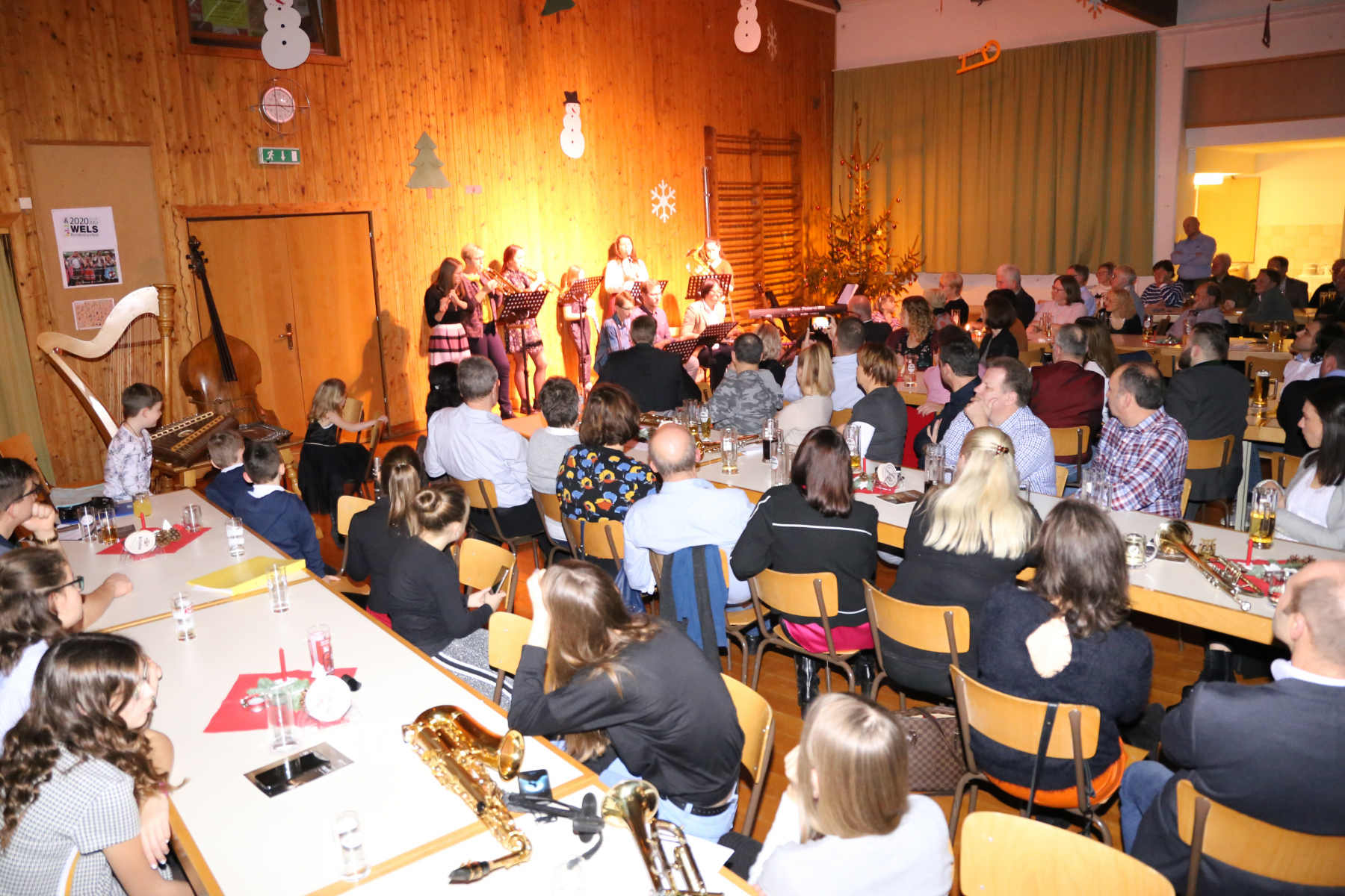 Am letzten Samstag vor Weihnachten, wenn alle Geschenke besorgt sind, wenn viele bereits im Weihnachtsurlaub sind, dann wird Weihnachten im Spielmannszug gefeiert. Die Turnhalle wird weihnachtlich dekoriert, Christbäume, Kerzen, Tannenzweige und der Adventkranz dürfen nicht fehlen. Einer langen Tradition folgend gestalten wir uns selbst eine besinnliche Stunde mit viel Musik und Worten dazwischen. Die Weihnachtsüberraschung in diesem Jahr war die Anwesenheit der Neumarkter Stubenmusi. Vor vielen Jahren ging diese volkstümliche Gruppe aus dem Spielmannszug hervor und heuer bauten sie ihre großen Instrumente (Harfe, Hackbrett, Zither, Kontrabass und Gitarre) auf der Weihnachtsbühne im Turnerheim auf. Auch die Kinder und Jugendlichen im SZ hatten Musikstücke vorbereitet, Julia Sauer schrieb wieder eine eigene lustig-nachdenkliche Weihnachtsgeschichte und der Höhepunkt des Abends war wohl der Vortrag von Christian Schöberl mit Tochter Judith, „Shallow“ von Lady Gaga und Bradley Cooper – ein wunderschönes Duett. Nach so viel Besinnlichkeit stürmten wir schließlich das perfekte Schnitzelbuffet von Brauwirt Dominik und verbrachten gemeinsam einen lustigen Abend. Um 22:37 Uhr stimmten wir die Marseillaise an, es war Bacardi-Time. Franz Pintscher bekam eine alte Lyra in die Hand gedrückt und voller Freude wurde in alten Erinnerungen geschwelgt.