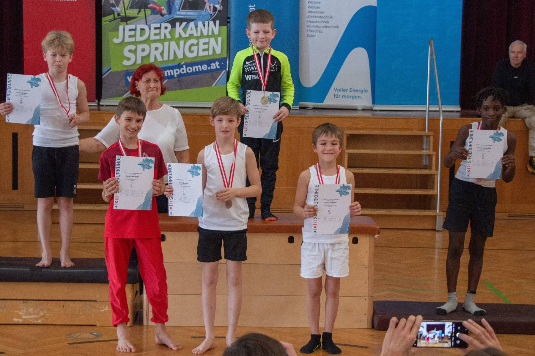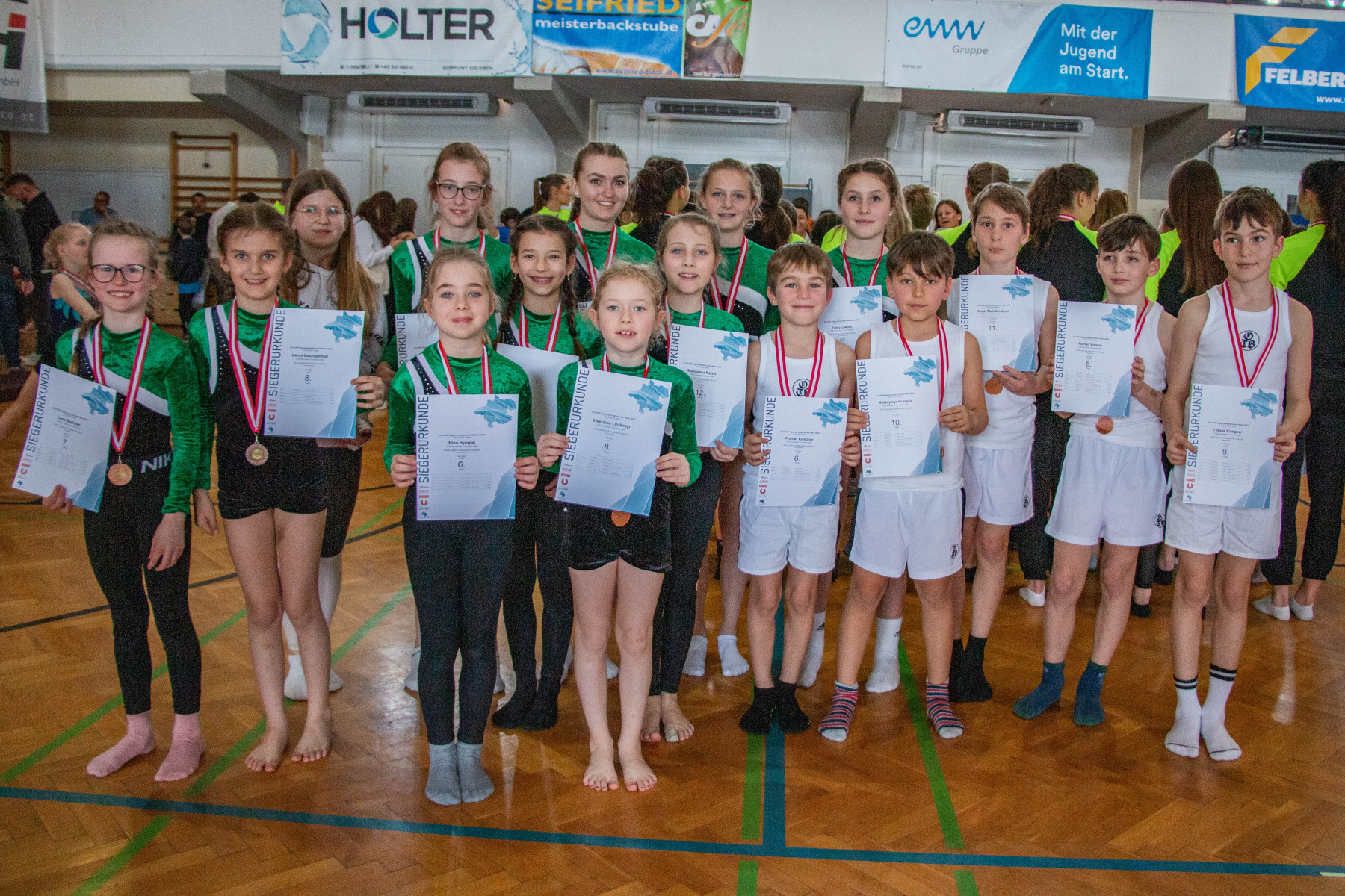 186 Kinder aus acht Turnvereinen stellten sich am Samstag, 25. März bei den Turn-10-Bezirksmeisterschaften in Wels einem Wettkampf. Aus Neumarkt folgten 15 Mädchen und Burschen der Einladung des Turnbezirks. Um den Wettkampf schnell und reibungslos austragen zu können, waren von Neumarkt auch fünf geprüfte Kampfrichter im Einsatz. Die Mädchen turnten an fünf Geräten (Reck, Boden, Balken, Trampolin und Sprung) und konnten einige hervorragende Ergebnisse erreichen, ist die Konkurrenz doch recht groß. Auch die Burschen, die an sieben Geräten (Reck, Boden, Pferd, Ringe, Barren, Trampolin und Sprung) antreten mussten, gaben ihr Bestes und können recht zufrieden sein mit den Ergebnissen!