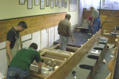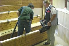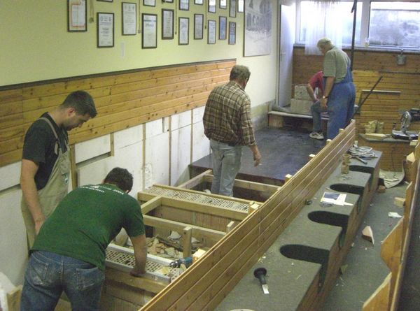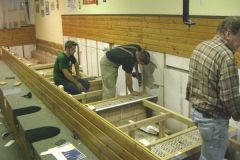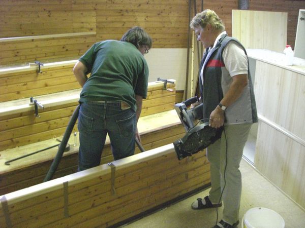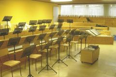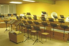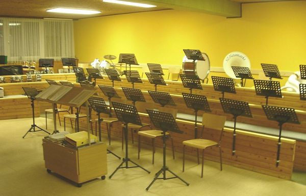 Durch die Hinzunahme von neuen Instrumenten wie z.B. Klarinetten, Saxophonen, Posaunen, Bariton und Sousaphonen, haben sich die Anforderungen an unseren Proberaum geändert. Zum einen brauchen einige Instrumente mehr Platz, um ordnungsgemäß gespielt werden zu können, zum anderen soll eine kompakte Sitzordnung das Zusammenspiel wesentlich erleichtern.