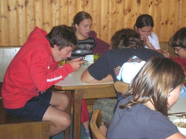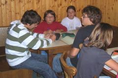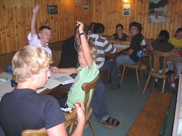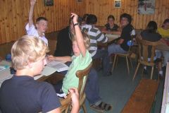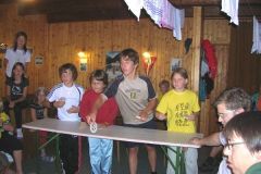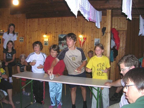 Bei nicht sehr einladendem Wetter ging es los, aber das der Stimmung keinen Abbruch, denn die Jugend fühlt sich auch in der Hütte wohl, besonders aber im Matratzenlager. Die wenigen regenfreien Stunden nützten wir für Spiele und Bewerbe im Freien, und in der Hütte wurden die kreativen und geistigen Bewerbe durchgeführt. In vier Gruppen, unterschiedlich nach Alter und Geschlecht zusammengestellt, wurden mit über 40 Bewerben die Sieger ermittelt. Erfreulich war, dass sich die Jugendlichen so gut miteinander verstanden und ihnen Fernseher und Computer überhaupt nicht fehlten.
