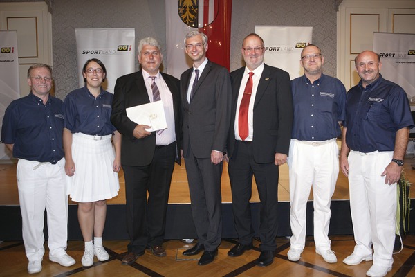 Ganz zufällig kam die OÖ Landesregierung natürlich nicht auf den Neumarkter Spielmannszug, wurde doch unter einigen anderen hohen Sportfunktionären unserem Posaunisten und Judochef Helmut Gföllner diese hohe Auszeichnung an jenem Tag von Landessportreferenten Dr. Michael Strugl überreicht. Viele Freunde und die Familie unseres Judochefs wohnten der Ehrung bei.