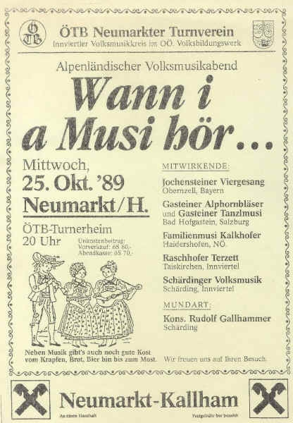 Mitwirkende: Jochensteiner Viergesang, Gasteiner Alphornbläser, Gasteiner Tanzlmusi, Familienmusi Kalkhofer, Schärdinger Volksmusik