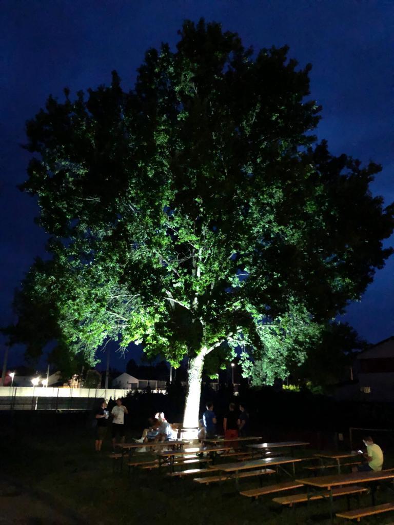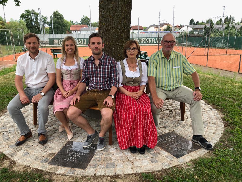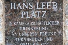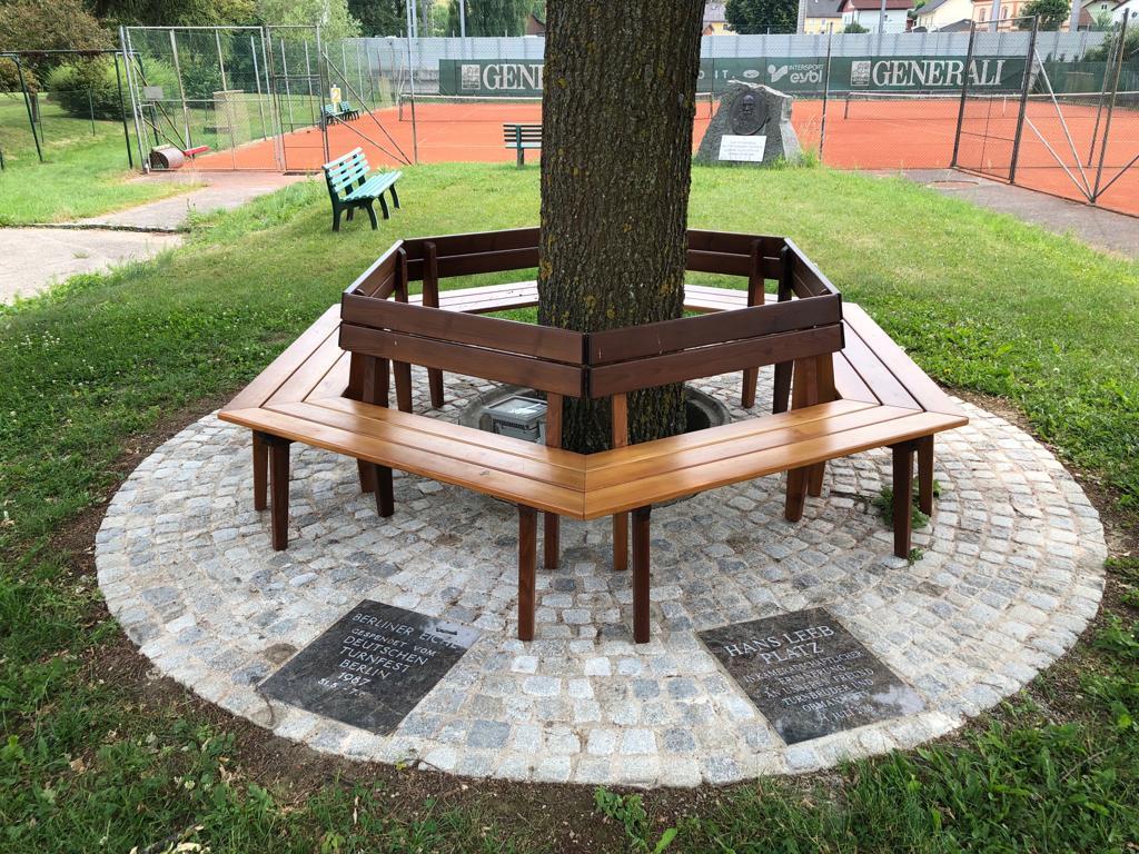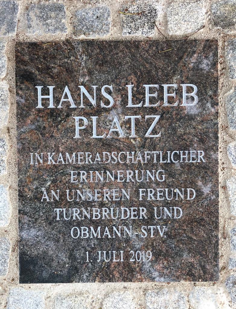 Nach dem viel zu frühen Ableben von Obmann-Stv. Johann Leeb im Jahr 2018 beschloss der Turnrat, um den inzwischen recht stattlichen Eichenbaum eine „Rundumbank“ anfertigen zu lassen. Ein eigenes Platzerl sollte an unseren einmaligen Freund und Obmann-Stv. erinnern. Am 1. Juli 2019, im Beisein der befreundeten Spielleute vom SZ Kieler Sprotten, SZ Neumarkt, Bgm. Ollinger und der Familie Leeb, wurde unser „Hans-Leeb-Platz“ eröffnet und eingeweiht. Die Bank fertigte Tbr. Gerhard Schien aus Akatienholz an, er und sein Bruder Günter übernahmen die Gestaltung des Platzes. Auch eine Granittafel, wie die der Berliner Eiche, wurde angebracht.