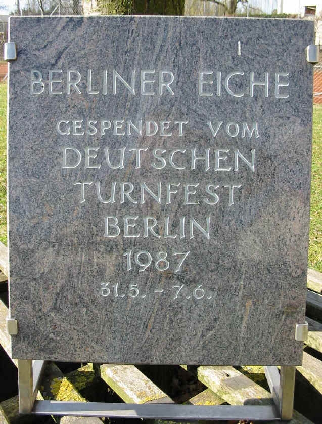 Beim Deutschen Turnfest 1987 in Berlin erhielt jeder teilnehmende Verein eine kleine Eiche als Erinnerung an dieses große Fest. Das Bäumchen war damals ca. 25 cm groß. Der ÖTB Neumarkter Turnverein pflanzte diese Eiche auf die Rasenfläche vor dem Turnerheim, seitdem wird sie gehegt und gepflegt. Nach zehn Jahren wurde eine Granittafel mit einer treffenden Beschreibung angefertigt und aufgestellt. Die Eiche erinnert an dieses Deutsche Turnfest in der damals noch geteilten Stadt Berlin.