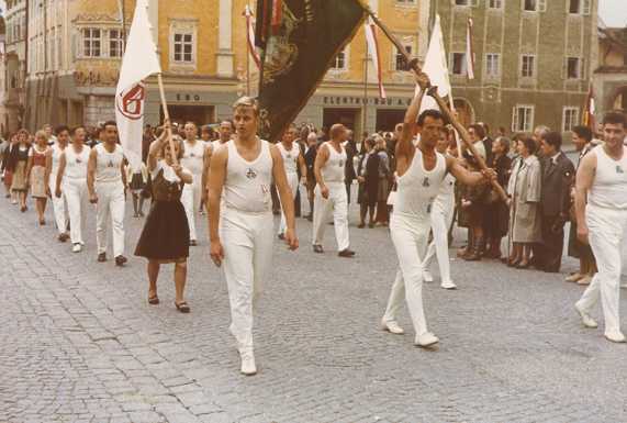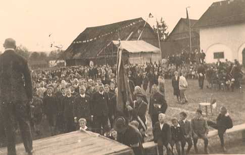 Die erste Traditionsfahne unseres Vereins wurde anlässlich des Bezirksturnfestes am 25. August 1923 enthüllt. Fahnenmutter war Frau Maria Ziegler aus Lehen. Für die Kosten wurden 1.500.000 Kronen bar aufgebracht und bei Bauern wurde Heu im Wert von 2.2500.000 Kronen gesammelt. Die Vereinsfahne fehlte bei keiner Veranstaltung.