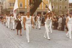 Fahnenmutter dieser neuen Fahne war Frau Klementine Oexle, die Mutter unser Tschw. Edith Lehner, die sich in unserem Turnerheim in den letzten Lebensjahren immer sehr wohl gefühlt hatte. Die neuen und auch die alte Fahne bekamen im selben Jahr einen schönen Aufbewahrungskasten im Stiegenhaus des Turnerheimes, wo sie mit allen Fahnenutensilien bestens aufgehoben sind. Kosten der neuen Traditionsfahne waren ca. ÖS 90.000,–.