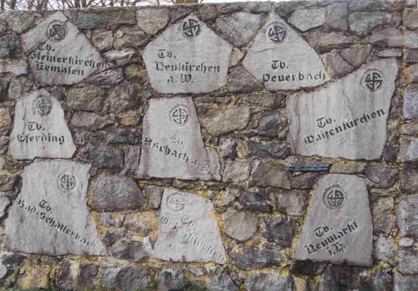 Das Jahndenkmal am Mayrhoferberg bei Aschach, der höchsten Erhebung des Bezirks Grieskirchen, ist zwar nicht im Besitz des Neumarkter Turnvereins, aber unser Verein besitzt dort eine Gedenktafel. Im Jahr 1929 wird das Jahndenkmal vom ATV Aschach errichtet und 1945 zerstört. Seit der Gründung des Österreichischen Turnerbundes in Wels 1952 fanden am Mayrhoferberg regelmäßig Bergturnfeste statt, die vom Turnverein Aschach veranstaltet wurden. Im Jahr 1952, zum 100. Todestag von Friedrich Ludwig Jahn, wurde das Jahndenkmal wieder neu errichtet. Die Turnvereine des Bezirkes verewigten sich dabei auf Granittafeln.